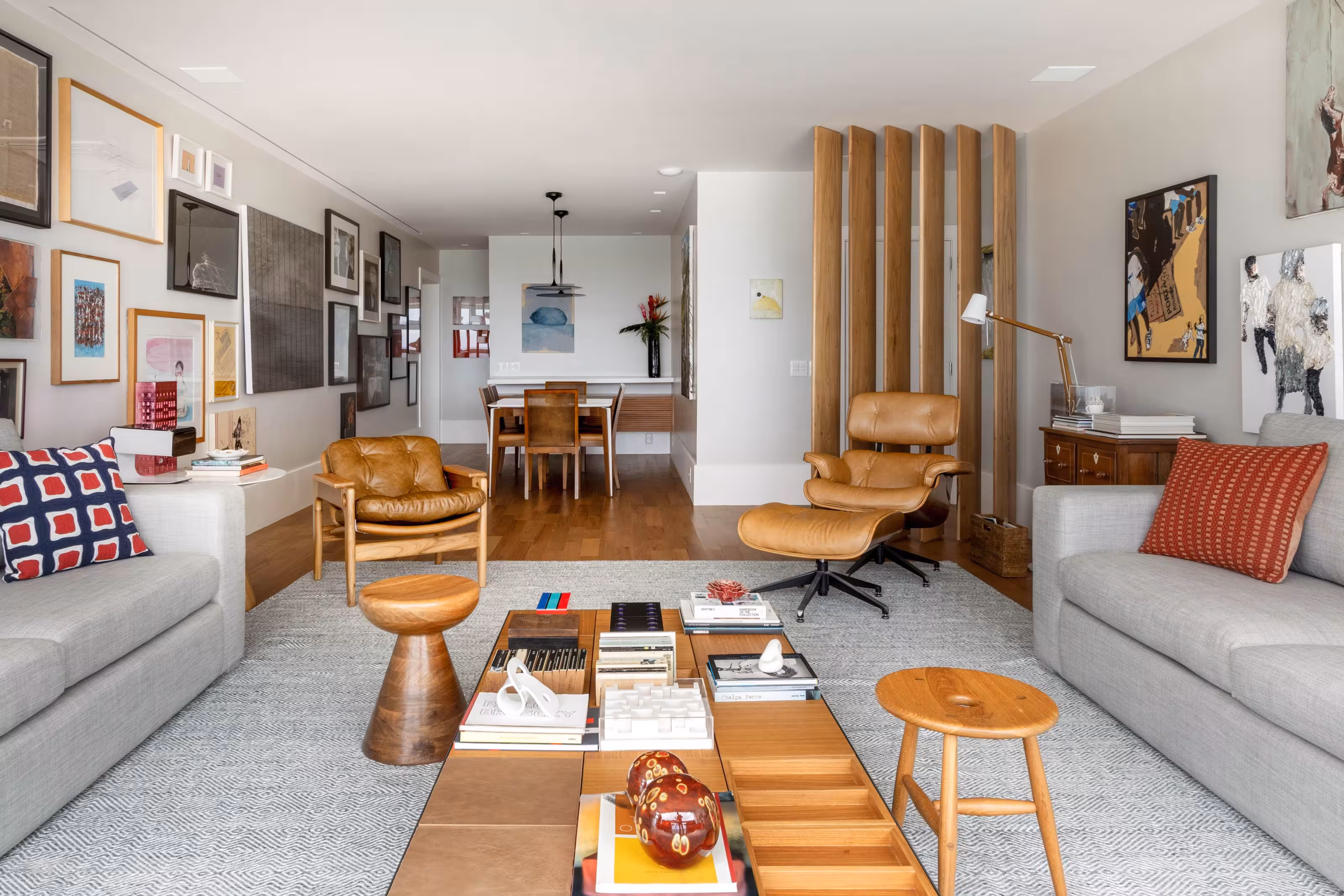 De frente para o mar, este apartamento foi desenhado para valorizar a vista e, ao mesmo tempo, abrigar com conforto o estilo de vida de um advogado que divide seu tempo entre o Rio de Janeiro e o exterior. O projeto buscou unir praticidade, elegância e personalidade, criando um espaço que pudesse funcionar tanto como refúgio quanto ponto de encontro para receber amigos.