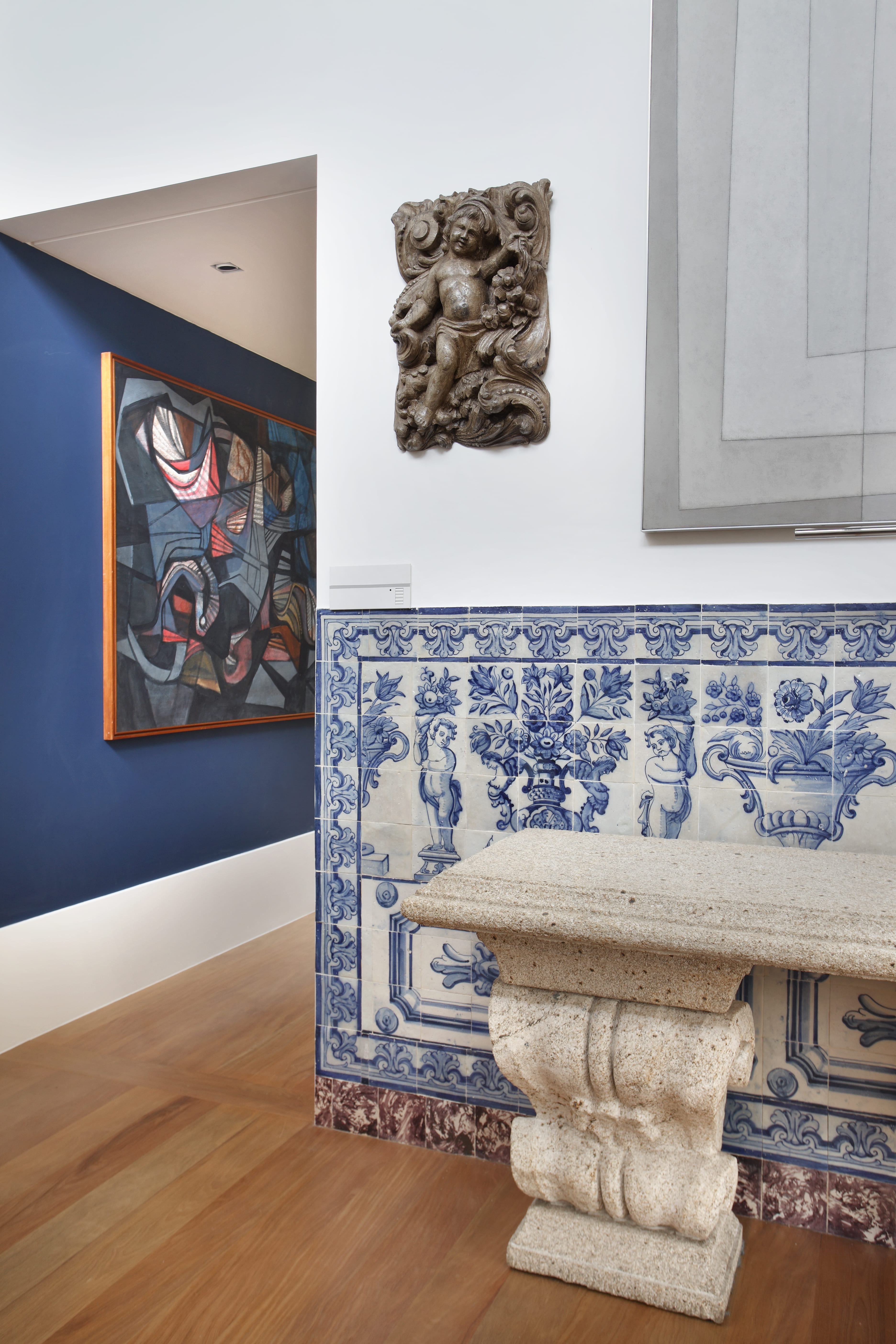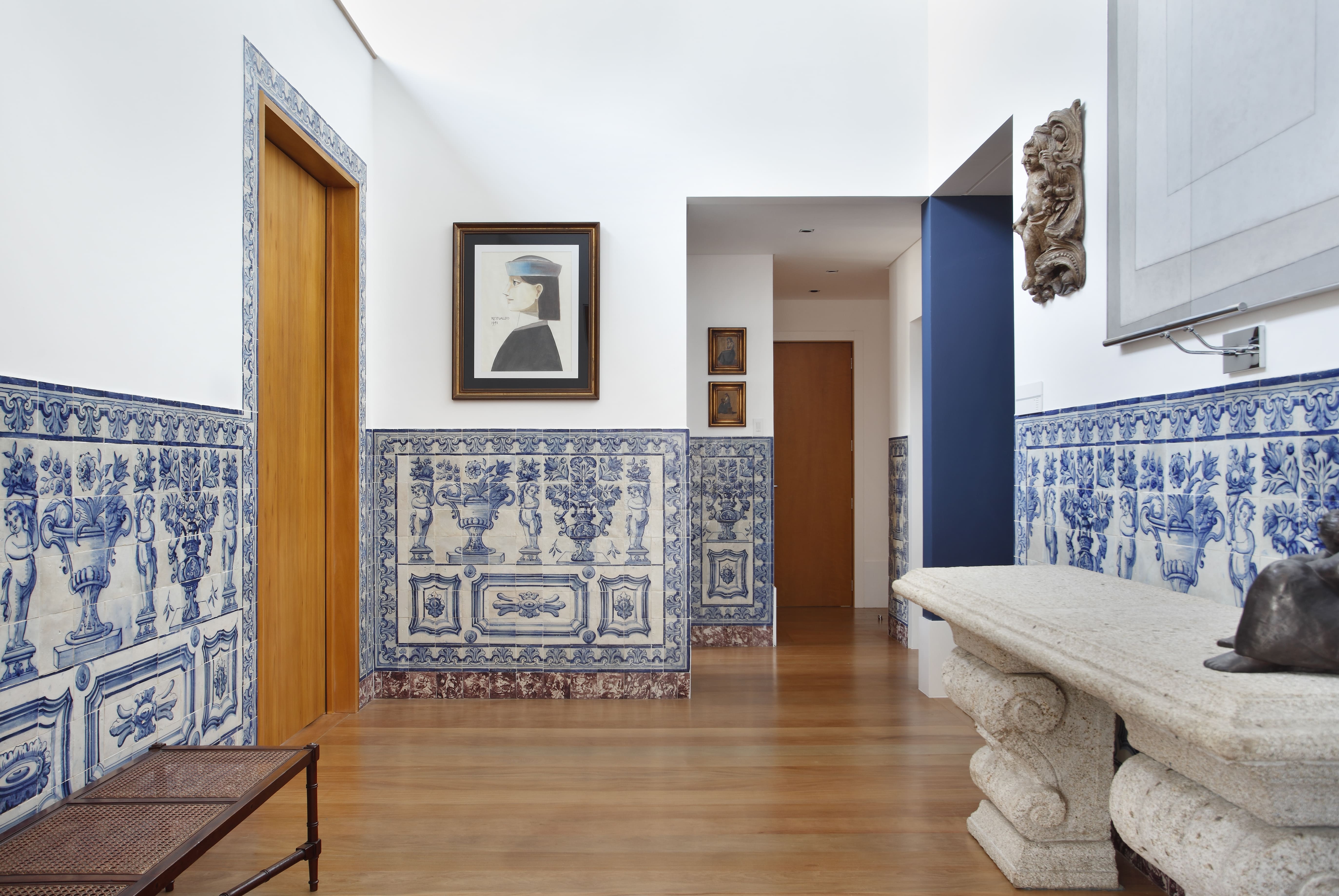 Os painéis de azulejos portugueses do século 18, que antes adornavam as paredes de um convento, foram o ponto de partida para o projeto desta casa em Alphaville, em Barueri, na Grande São Paulo.