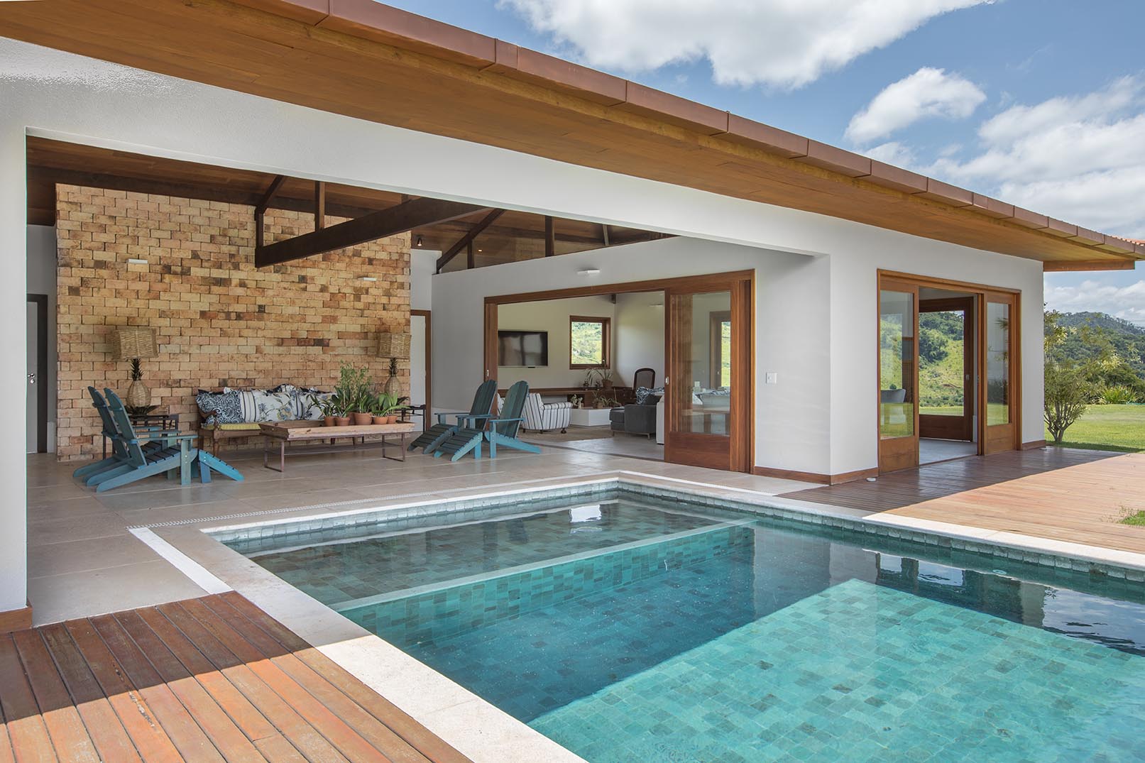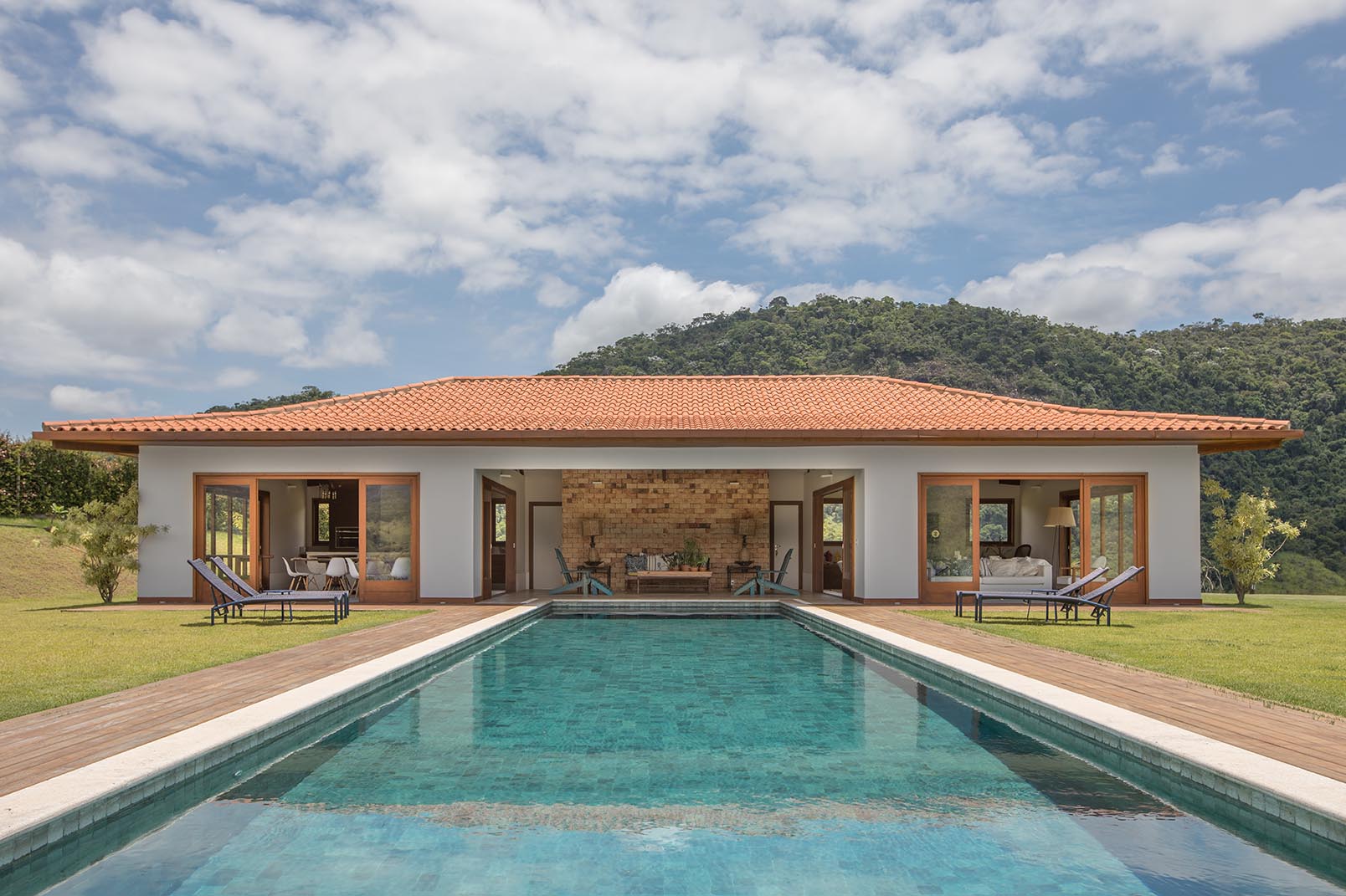 Localizada em Secretário, na serra carioca, esta casa de fim de semana traduz a essência do descanso em meio à natureza. O projeto aposta em materiais rústicos e honestos — madeira e tijolos aparentes — que se integram à paisagem e reforçam a atmosfera acolhedora e despretensiosa do lugar.