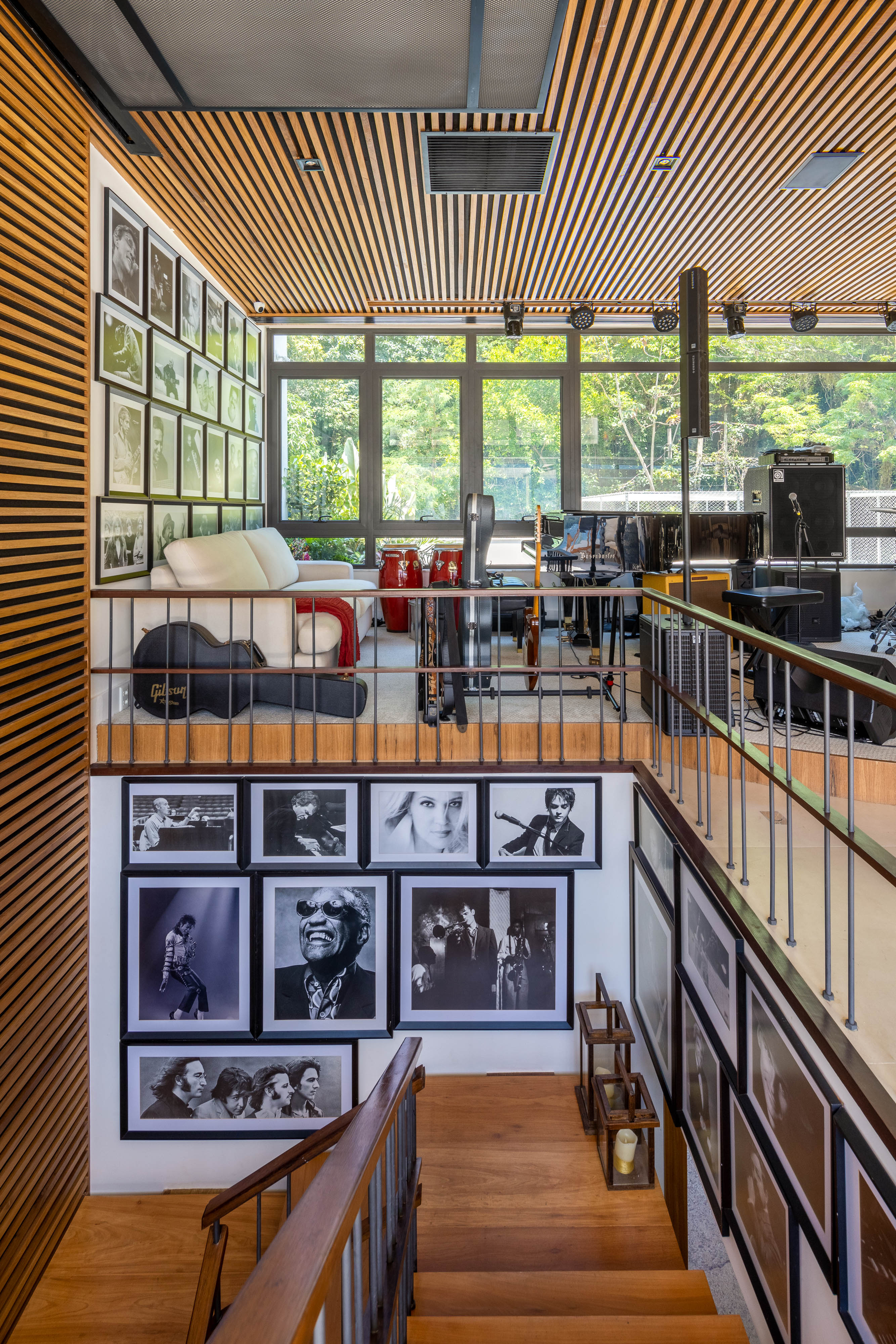 Liza Minelli e Elton John são algumas das estrelas internacionais que já pisaram naquele “palco”. Eram outros tempos, os anos 1960 e 1970, quando o triplex na Lagoa pertencia ao produtor musical Alfredo Machado, que sempre usou o terceiro andar como um estúdio informal. Hoje, o imóvel tem outro dono, mas sua vocação para a música segue intocada.